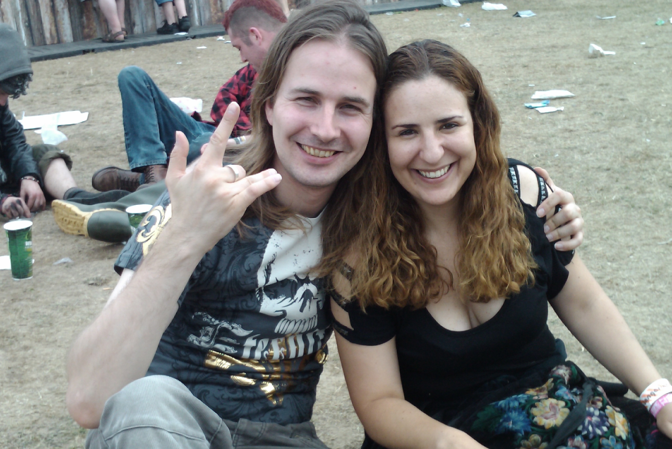 At noon, we officially tie the knot in the presence of close family and many heavy metal fans. At night, Def Leppard, Tenacious D and Slayer perform in our wedding! How many get that kind of lineup to play at their wedding?